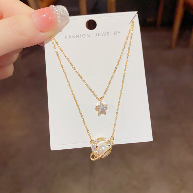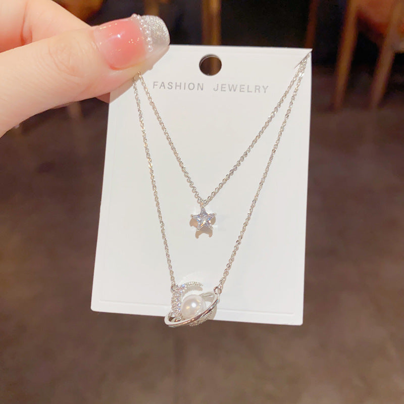 - Detalles: Colgante de estrella con circonita cúbica y planeta con perla sintética.